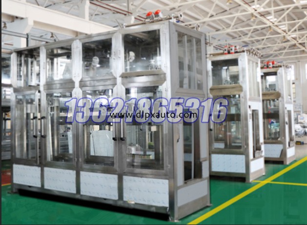 √本機(jī)功能:本機(jī)專(zhuān)門(mén)針對(duì)50-300kg的液體桶包裝而設(shè)計(jì)的智能化包裝系統(tǒng),灌裝主機(jī)部分采用不銹鋼環(huán)保外框,可視窗,自動(dòng)移門(mén),灌裝時(shí)為封閉式;整條線自動(dòng)完成進(jìn)桶、移門(mén)開(kāi)、關(guān),自動(dòng)識(shí)別桶口、自動(dòng)對(duì)準(zhǔn)桶口、自動(dòng)開(kāi)蓋、自動(dòng)灌裝、灌裝結(jié)束自動(dòng)旋蓋。本機(jī)采用可編程控制器(PLC)進(jìn)行控制,觸摸屏操作,具有操作方便,生產(chǎn)效率高,適用范圍廣等特點(diǎn);本機(jī)電氣控制部分則由PLC可編程控制器,變頻調(diào)速器等組成,控制能