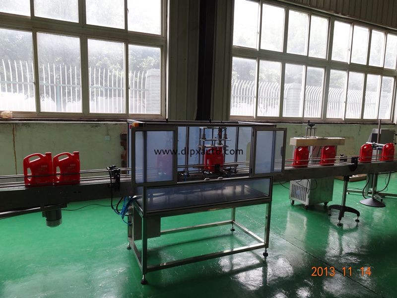 該全自動流水線樹脂灌裝機廣泛應(yīng)用石化、日化、制藥、食品、農(nóng)藥、化工等行業(yè)的包裝流水線中。可實現(xiàn)灌裝、上蓋、旋蓋、鋁箔封口、貼標(biāo)、裝
