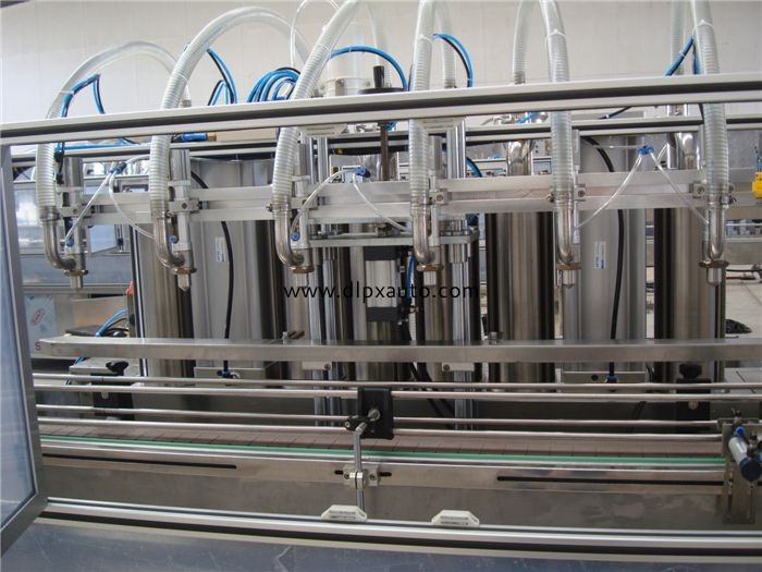 液體灌裝機的計量缸分別連接灌裝頭,通過主油缸的往復(fù)運動,吸人定量的液體、半流體、有體,然后注入待裝的容器中。在此過程中,需要及