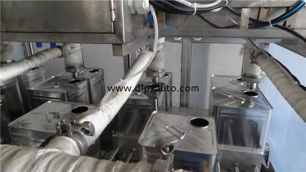 手工放桶一自動定位稱重灌裝一自動放蓋旋蓋一 自 動貼標(biāo)-自動碼垛