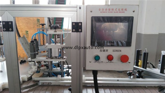 直線液體灌裝機本機采用PLC可編程控制,配以5.7英寸觸摸屏人機界面系統(tǒng),灌裝量的調(diào)節(jié)、灌裝速度快慢、整個設備系統(tǒng)都在人機界面上輕輕-按