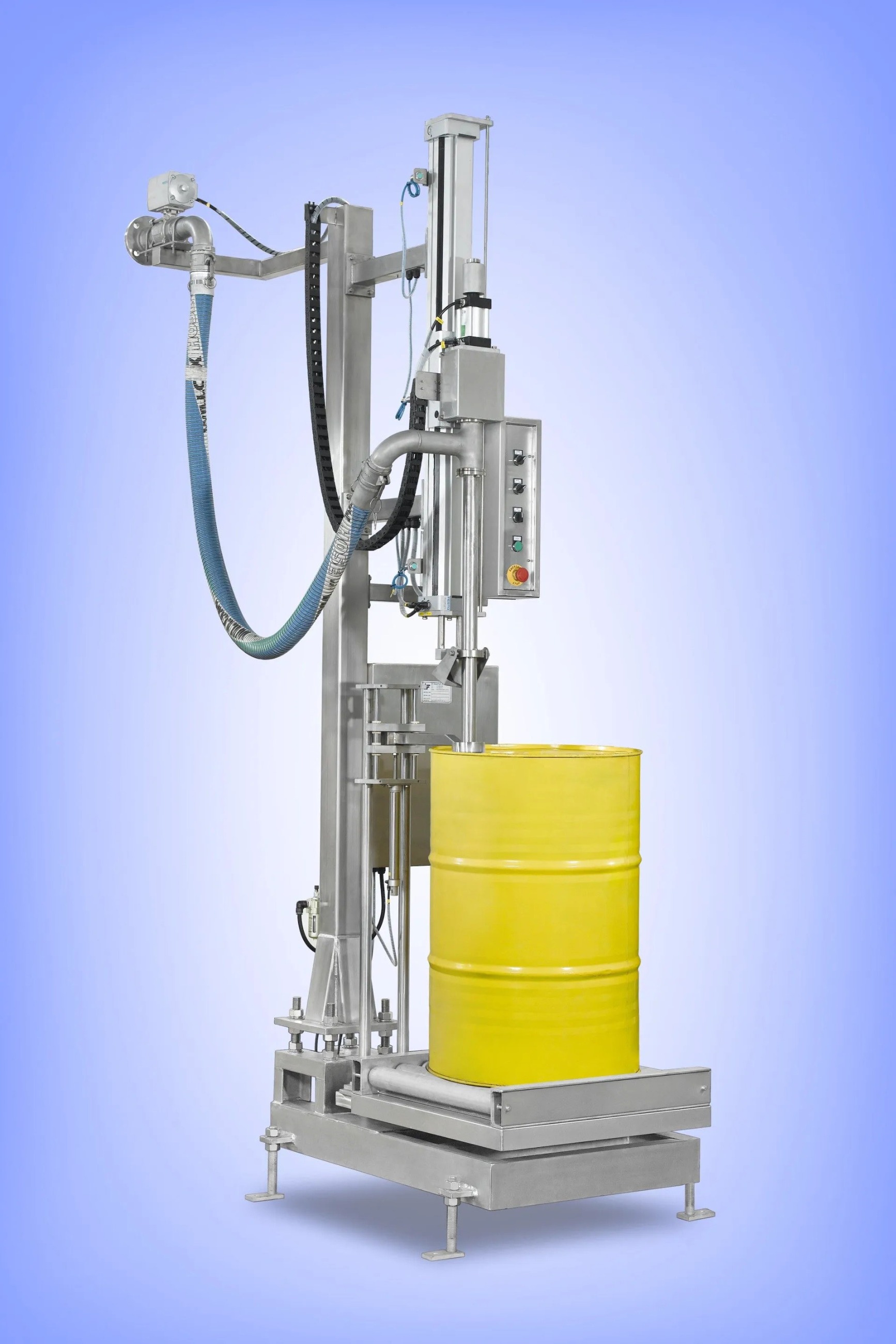 ■ 設(shè)備自動(dòng)將空桶輸送到灌裝區(qū)進(jìn)行灌裝,灌裝結(jié)束后,動(dòng)力滾筒自動(dòng)將滿桶輸送到上蓋區(qū)上蓋壓蓋,后端可配置自動(dòng)貼標(biāo)機(jī),自動(dòng)碼垛機(jī),空桶區(qū)亦可配置自動(dòng)分桶機(jī)