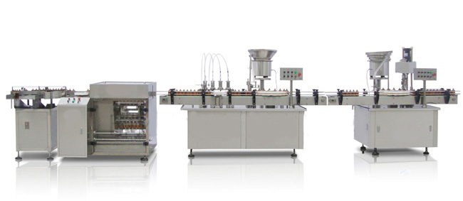 全自動(dòng)液體灌裝生產(chǎn)聯(lián)動(dòng)線由輸瓶機(jī)、直線式液體灌裝上塞機(jī)及多功能上蓋封口機(jī)組成,能自動(dòng)完成理瓶、輸瓶、灌裝、上塞、理蓋、上蓋、封口等工序,高度符合GMP要求。組成聯(lián)動(dòng)線的設(shè)備可單獨(dú)使用。