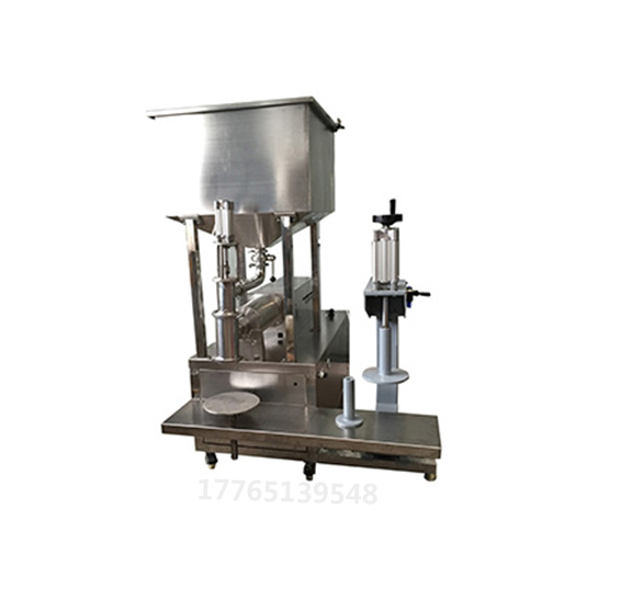 當(dāng)儲(chǔ)槽里原料低于下限位時(shí),供料裝置自動(dòng)打開給儲(chǔ)槽供料,當(dāng)儲(chǔ)槽液位達(dá)到上限位時(shí),關(guān)閉供料裝置。人工將空桶放到秤臺(tái)上,人工對(duì)孔,然后點(diǎn)擊啟動(dòng)按鈕,儀表首先判桶并扣除空桶皮重,灌裝頭打開進(jìn)入快速落料,當(dāng)達(dá)到慢進(jìn)料設(shè)定重量時(shí),自動(dòng)轉(zhuǎn)為慢速落料。當(dāng)重量達(dá)到目標(biāo)值時(shí)停止落料,此時(shí)儀表回皮顯示總重,人工將成品桶取出并放蓋推到壓蓋區(qū),光感感應(yīng)到有桶,壓蓋氣缸下降壓蓋,壓蓋完成后人工取出,整個(gè)動(dòng)作流程結(jié)束。