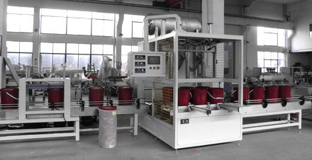 適用產(chǎn)品:潤(rùn)滑油,涂料,油漆,油墨、潤(rùn)滑脂、潤(rùn)滑油、膩?zhàn)?、固化劑、凡士林等等液體以及半流體桶裝定量灌裝??膳涮资褂米詣?dòng)上桶分桶,自動(dòng)上蓋壓蓋封蓋,自動(dòng)碼垛等全自動(dòng)生產(chǎn)線設(shè)備