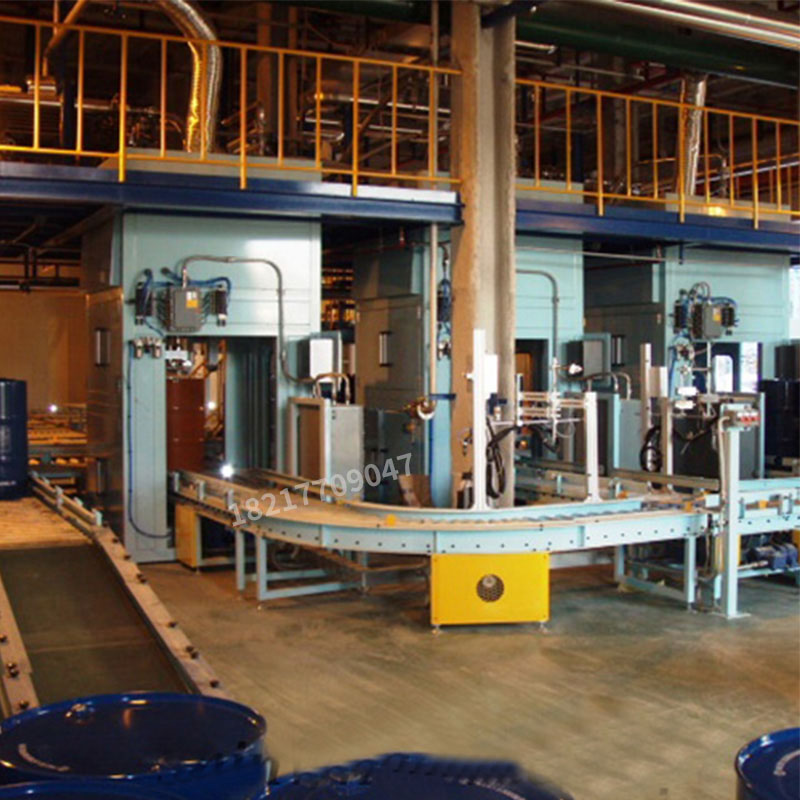 設計獨特的灌裝頭裝置易于操作,灌注快速、精確;并且灌裝機大限度地保證灌注完畢時殘液的滴漏。操作時,操作者先將空桶開蓋放置在空桶暫存區(qū)!輸送線自動輸送至灌裝工位,液體灌裝機自動對口。然后打開灌裝閥門,精確地雙速灌裝;灌裝結(jié)束,灌裝秤頭自動提升至桶外,滴漏盤自動接至灌裝頭底部灌裝完成,輸送線啟動自動將成品桶輸送至鎖蓋區(qū),人工鎖蓋完成自動輸送至成品區(qū),叉車叉走成品桶整個灌裝流程結(jié)束!