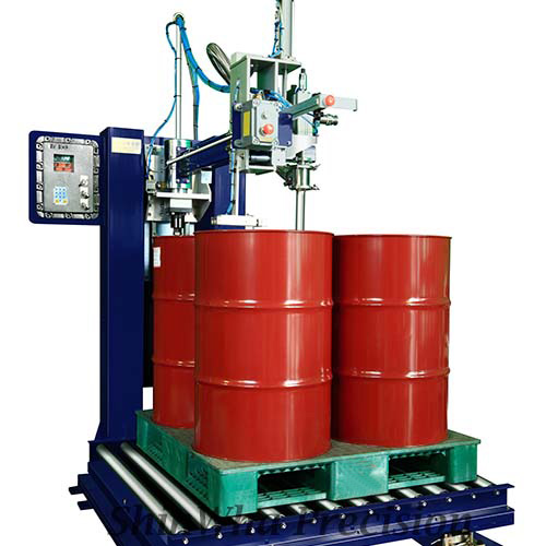 - 可在托盤上裝載 4 個桶的樹脂灌裝機
