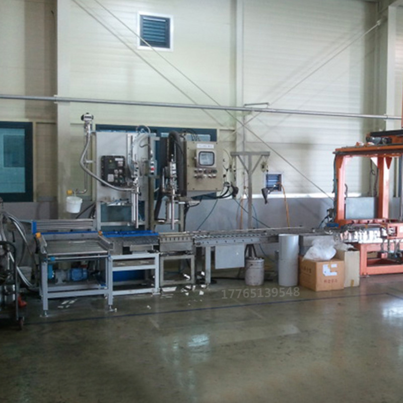 操作流程: 空桶自動輸送 - 空桶撥至稱重區(qū)同時自動對桶口 - 空自動除皮 - 自動定量 - 自動推桶至鏈板輸送線 - 自動上蓋同時自動鎖蓋 - 重桶輸送到重桶待提區(qū) - 人工提走即完成