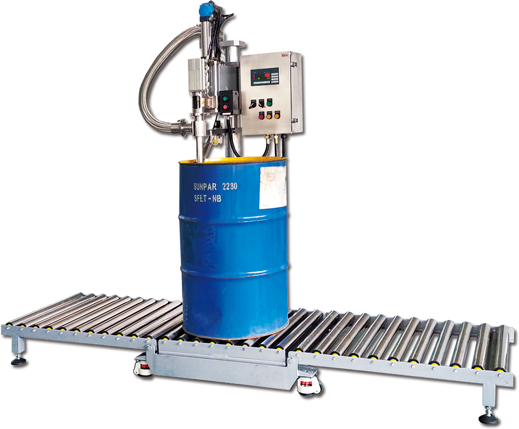 Semi Auto Drum Filler is designed to fill general liquids, such as Chemicals, industrial oil, liquids that are not foamy. Filling Control by weight, accurate with high drumming output.