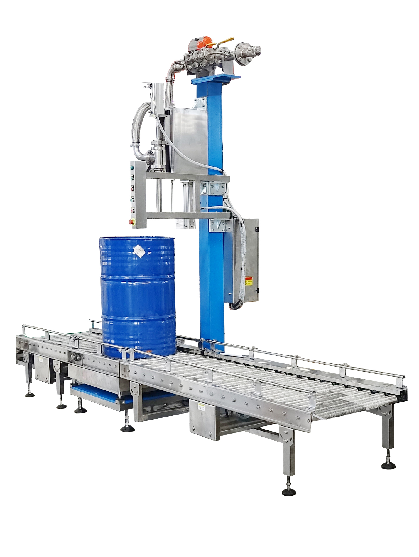 本機專門針對100-300kg的液體桶包裝而設(shè)計的智能化包裝系統(tǒng),下潛灌裝,采用高精度稱重傳感器進行稱重灌裝,可自動設(shè)定液體灌裝機,自動進行毛重、凈重灌裝。具有操作方便,生產(chǎn)效率高,適用范圍廣等特點。適用于涂料、化工產(chǎn)品以及化工中間體的灌裝。它產(chǎn)能穩(wěn)定,操作簡單。