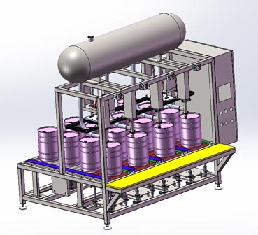 Fully automated filler for weighted and production line filling of 1 to 60-litreRound or rectangular- based metallic or plastic cans, barrels and drums.The Machine may be equipped with multiple workst