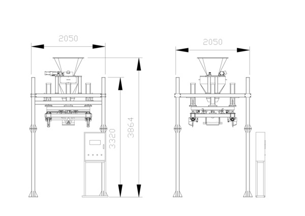 設(shè)備由支撐框架、傳感器吊裝模塊、掛袋機(jī)構(gòu)、夾袋部分、進(jìn)料機(jī)構(gòu)、電氣控制系統(tǒng)組成。